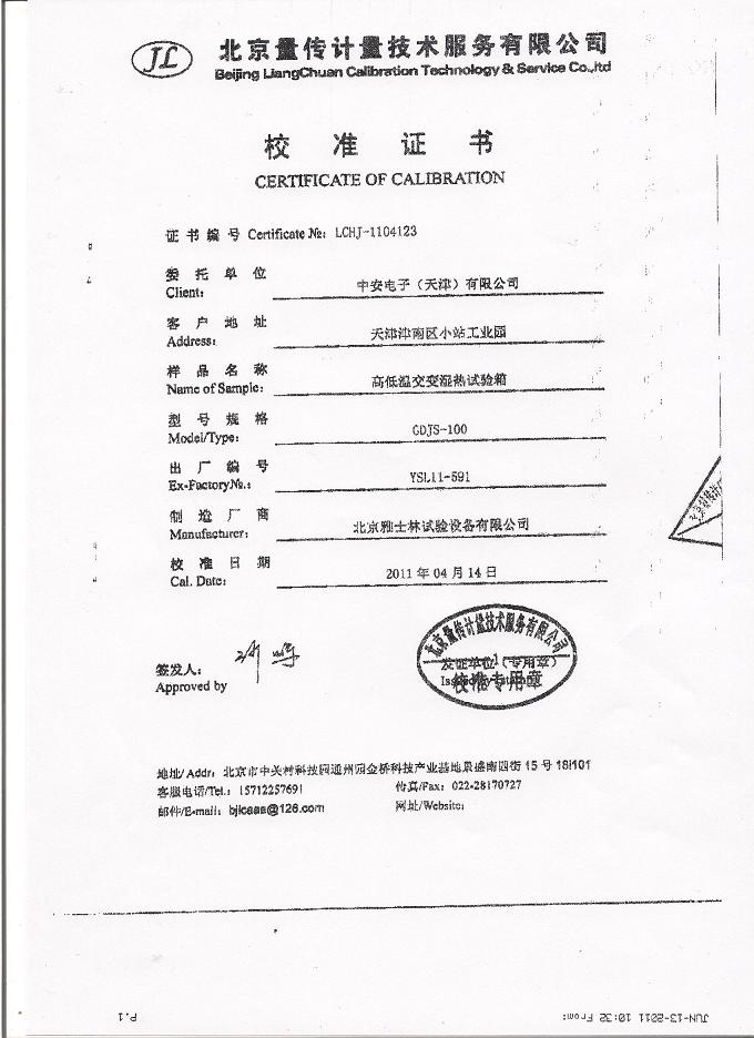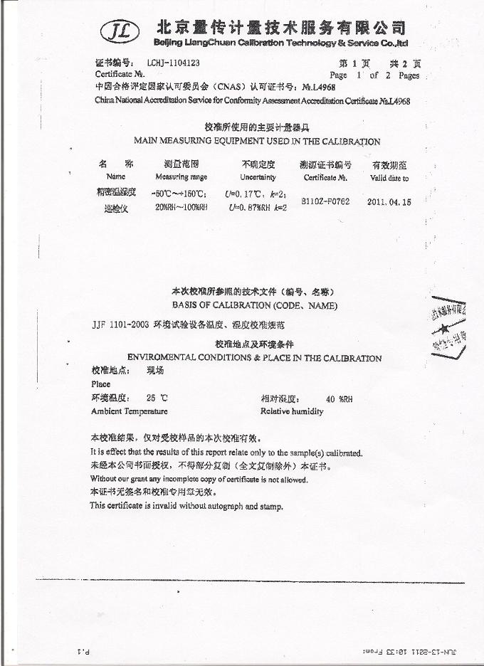 主頁 > 服務(wù)中心 > 校準(zhǔn)證書 >