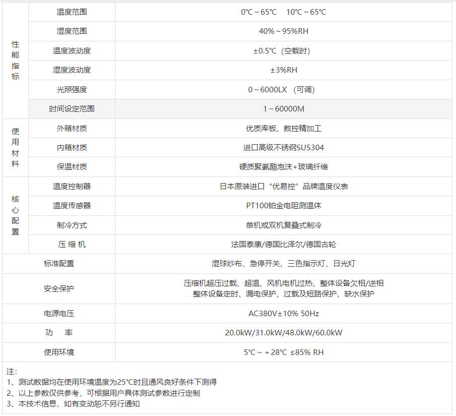 標準配置 | 濕球紗布、急停開關(guān)、三色指示燈、日光燈 | ||||||