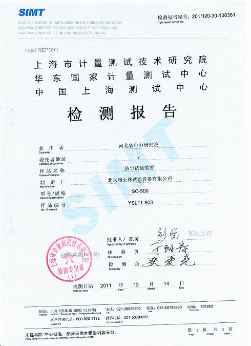>>砂塵試驗(yàn)箱檢測(cè)報(bào)告-上海計(jì)量院-河北電科院