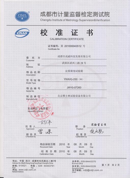 鹽霧腐蝕試驗箱校準(zhǔn)證書-成都計量院-戎威科技