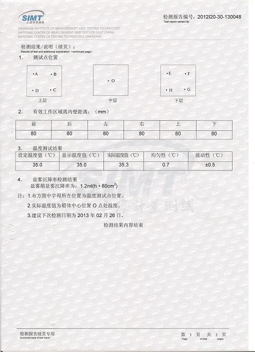 鹽霧腐蝕試驗箱檢測報告-上海計量院-富金實業(yè)