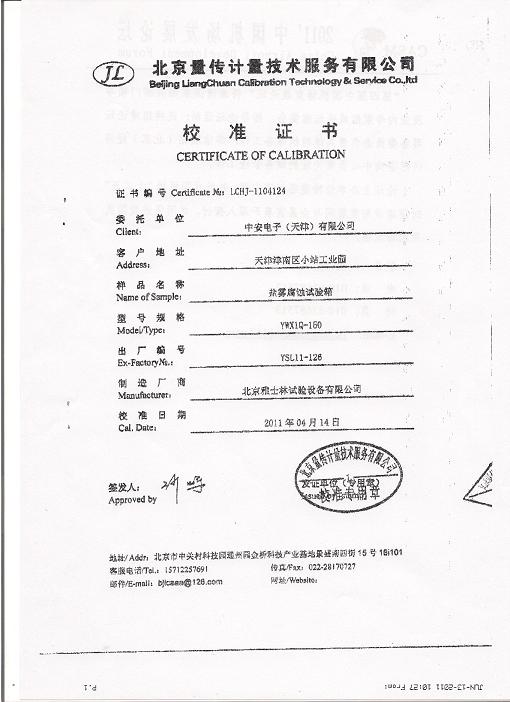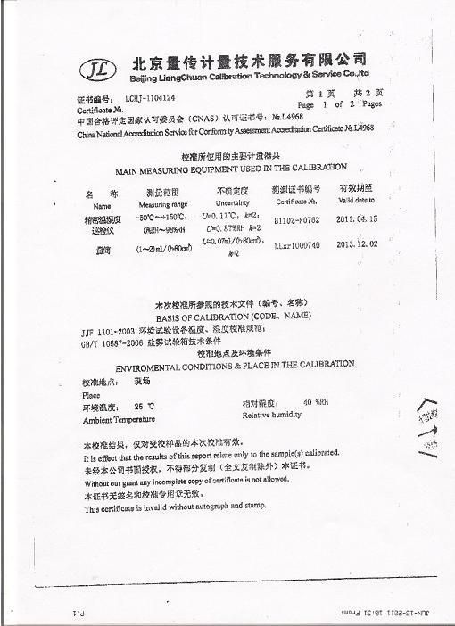 >>鹽霧腐蝕試驗箱校準(zhǔn)證書-北京量傳計量-中安電子