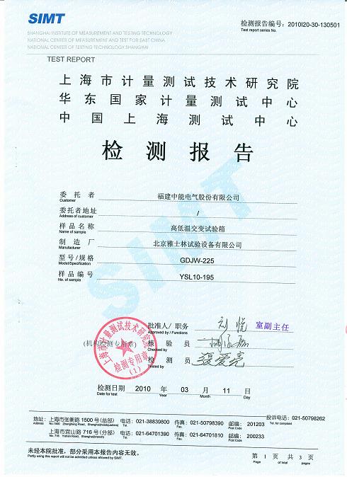 >>高低溫交變試驗(yàn)箱檢測報(bào)告-上海計(jì)量院-中能電氣