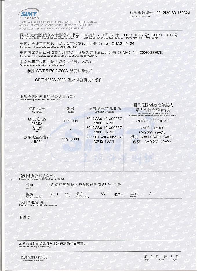>>高低溫交變濕熱試驗(yàn)箱檢測報(bào)告-上海計(jì)量院-振華集團(tuán)