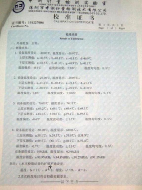 高低溫交變濕熱試驗箱校準(zhǔn)證書-深圳中測計量-深圳精銳通
