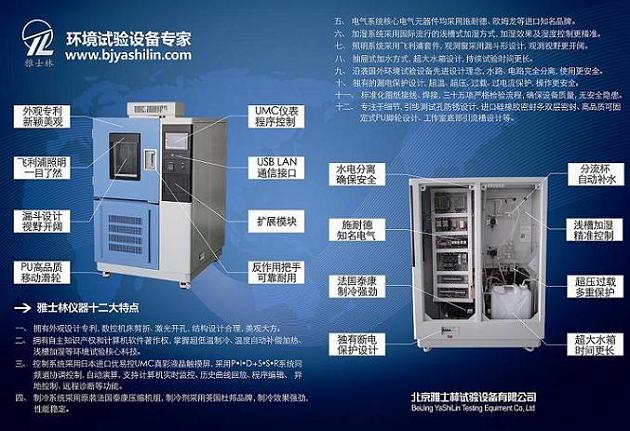 寶劍鋒從磨礪出,梅花香自苦寒來。雅士林儀器持續(xù)創(chuàng)新,開發(fā)最前沿的測試技術,使雅士林的產(chǎn)品肯有更加大的生命力。雅士林儀器定位于中高端客戶群,高品質(zhì)、高性能高低溫交變濕熱試驗箱系列的產(chǎn)品特點: 1、擁有外觀設計專利,數(shù)控機床剪折、激光開孔,結構設計合理,新穎美觀。 2、擁有自主知識產(chǎn)權和計算機軟件著作權,掌握超低溫制冷、溫度自動補償加熱、淺槽加濕等環(huán)境試驗核心科技。 3、控制系統(tǒng)采用日本進口優(yōu)易控UMC系列7英寸高清真彩液晶觸摸顯示屏,溫度控制采用P•I•D+S•S•R系統(tǒng)同頻道協(xié)調(diào)控制,自動演算的功能,支持電腦實時監(jiān)控、歷史曲線回放、程序編輯、遠程診斷等功能。 4、制冷系統(tǒng)采用原裝法國泰康壓縮機組,制冷劑采用美國杜邦品牌,制冷效果強勁,性能穩(wěn)定。 5、電氣系統(tǒng)核心電氣元器件均采用施耐德、歐姆龍等進口知名品牌。 6、加濕系統(tǒng)采用國際流行的淺槽式加濕方式,加濕效果及濕度控制更精準。 7、照明系統(tǒng)采用飛利浦套件,觀測窗采用漏斗形設計,觀測視野更開闊。 8、抽屜式加水方式,超大水箱設計,持續(xù)試驗時間更長。 9、沿襲國外環(huán)境試驗設備先進設計理念,水路、電路完全分離,使用更安全。 10、獨有的漏電保護設計,超溫、超壓、過載、過電流保護,操作更安全。 11、標準化圖紙接線、焊接,三十五項嚴格檢驗流程,確保設備質(zhì)量,無安全隱患。 12、專注于細節(jié),引線測試孔防銹設計、進口硅橡膠密封條雙層密封、高品質(zhì)可固定式PU腳輪設計、工作室底部引流槽設計等。 全國免費服務電話:4006 400 998 |