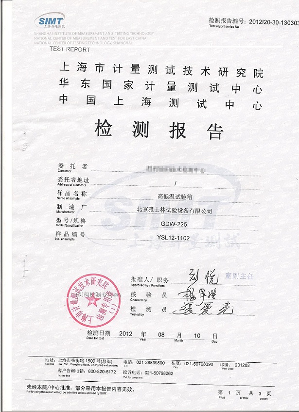 ·高低溫試驗(yàn)箱檢測(cè)報(bào)告模板下載--上海計(jì)量院